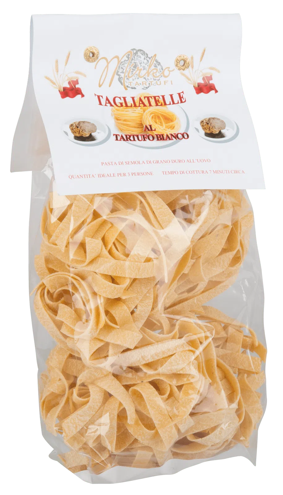 The special taste of white truffle inside and outside! Our White Truffle Tagliatelle are a perfect match with our condiments, such as truffle oil or fresh sliced truffle!